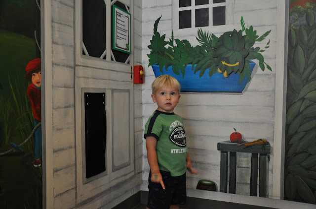 This has got to be one of the neatest places I have ever taken Jamie! Aunt Sarah, Bubba, Jamie and I headed up to Lancaster this week to check it out. The drive was a little out of control. It took us almost 2 hours to get there, but it was worth it and we will go back! It was only $7 to get in and the boys had a blast. Afterward we went to Oregon Dairy to eat and play. They had a buffet so I was happy (even though there were no characters!) It was super fun to hang out with my cousin (and the babies of course!)